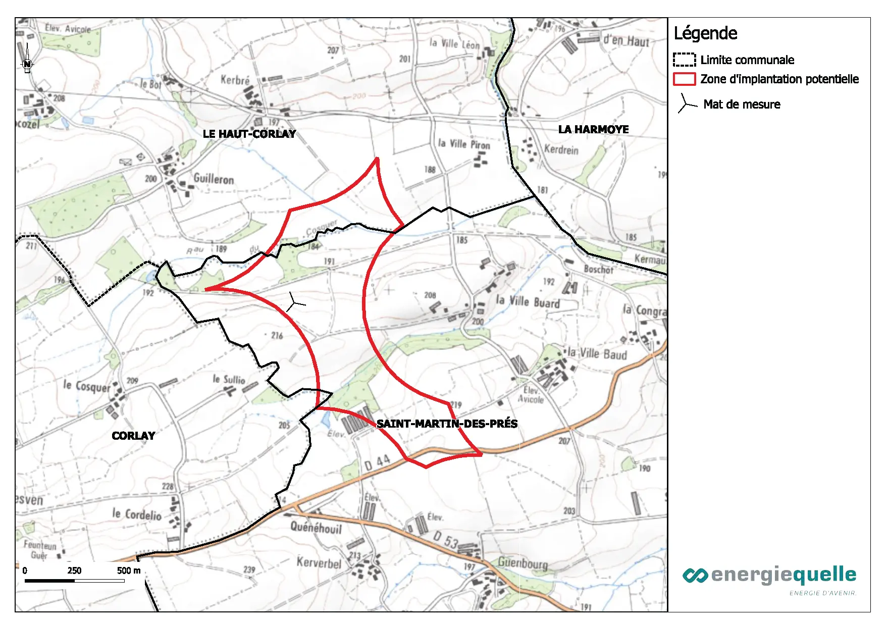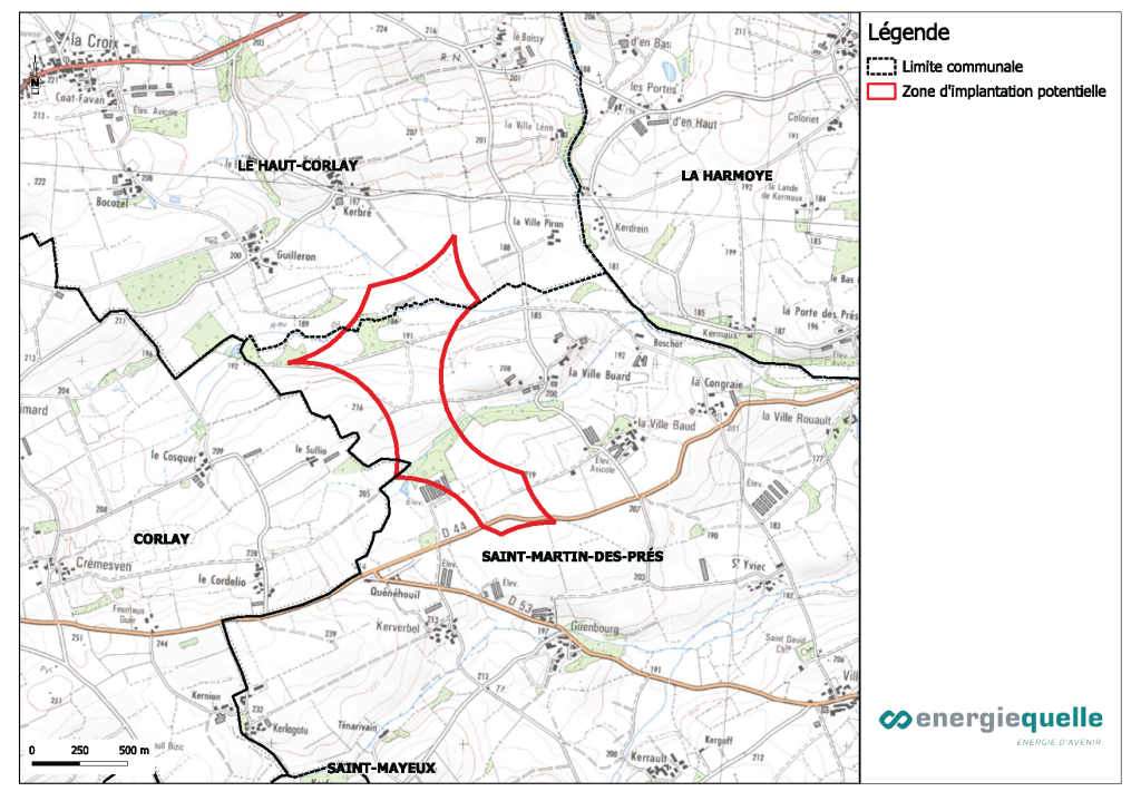 Nous avons entrepris des démarches sur votre territoire pour étudier la faisabilité d’un projet de parc éolien. Il s’agit d’un processus qui s’étend sur plusieurs années et se déroule en plusieurs étapes. Après avoir défini une implantation, une demande d’autorisation de construire et d’exploiter est déposée auprès des services de la Préfecture. Nous étudions et proposons un projet, les services de l’État l’instruisent et le Préfet du Département prend la décision de refus ou d’autorisation.