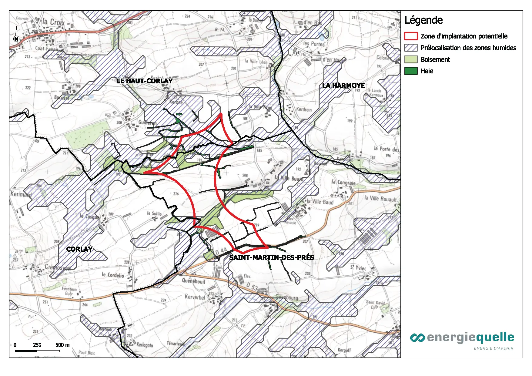 - S’éloigner des deux ruisseaux traversant la zone d’implantation potentielle.